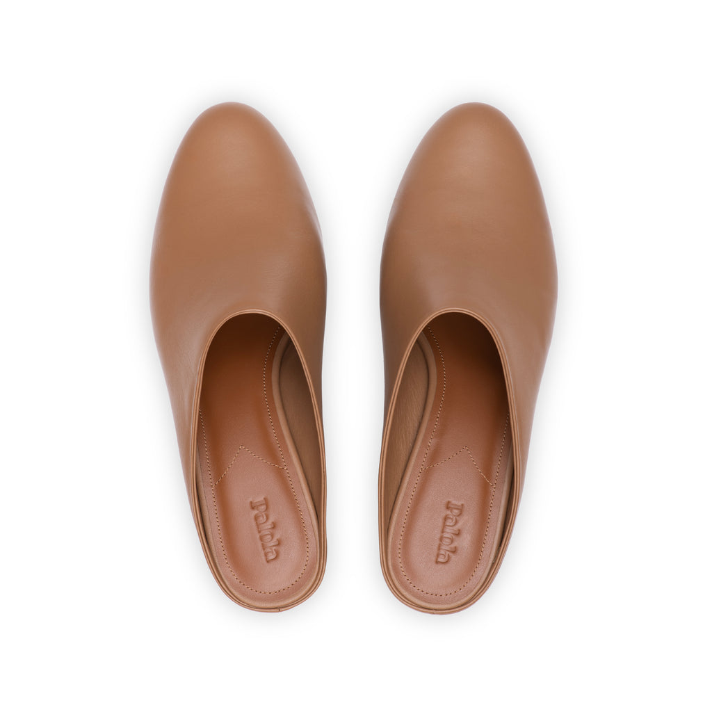 Zoe 55 Heeled Mule in Caramel Nappa Leather